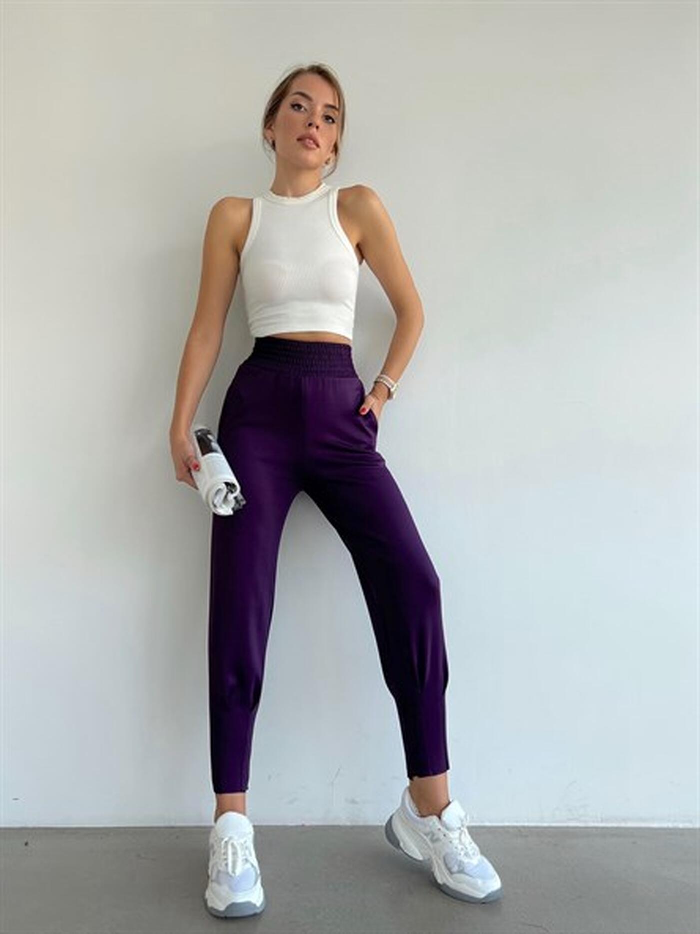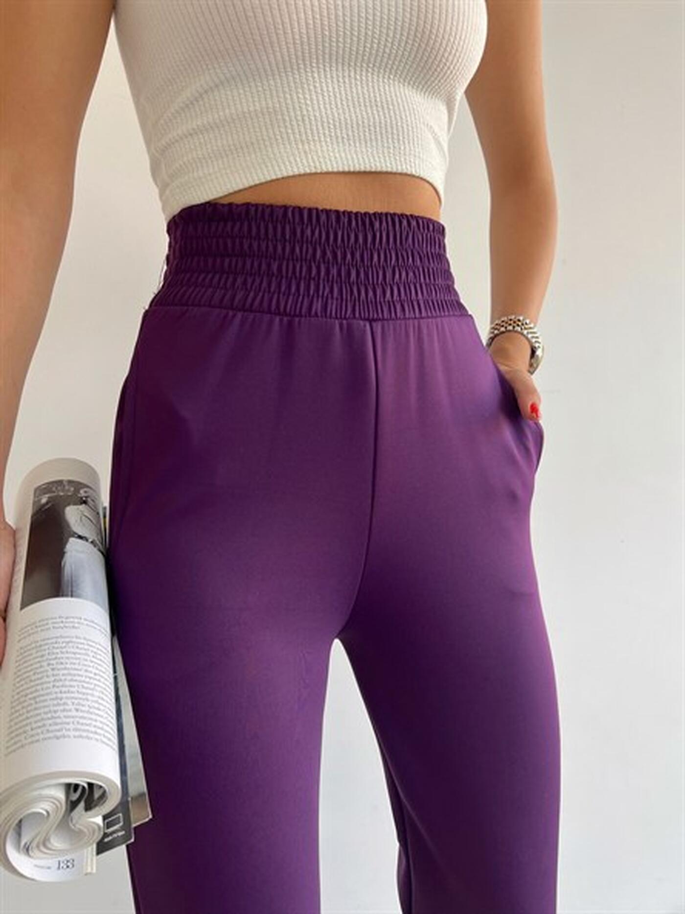 Acești pantaloni mov sunt ideali pentru un look casual modern, oferind confort și stil în orice situație. Cu o talie înaltă și un design minimalist, sunt ușor de combinat cu diverse ținute.